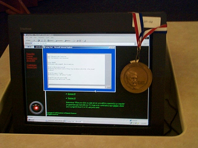 1: The Judging 2: Dr. Wallace and Dr. Loebner 3: ALICE A.I. Foundation Board Member Elizabeth Hutchinson, Finalists Abe Othman and Joy Harwood Photo Courtesy of Dr. Richard S. Wallace |